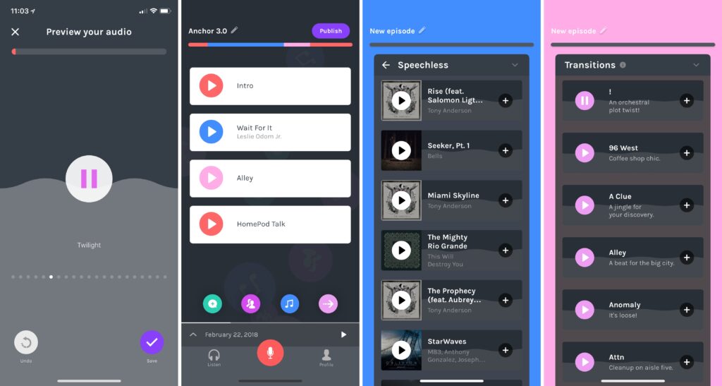 Anchor 3.0’ın asıl güzelliği podcast ile ilgili tüm işlemleri mobil olarak yapma imkanı sunuyor olması. Bilgisayara erişiminiz olmadığı durumlarda veya telefondan çalışmak istediğinizde bu büyük bir kolaylık. iOS ve Android için olan Anchor 3.0 son versiyonunda ses kaydı, düzenleme ve yayınlama hizmeti sunuyor. Ayrıca içeriğinize eklenebilecek fon müzikleri ve yayınınıza bağlanırken kullanılabilecek eğlenceli filtreler de sunuyor.